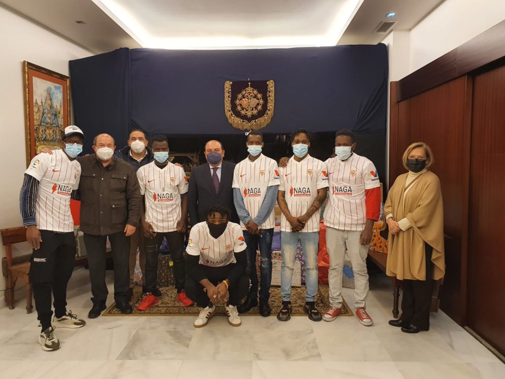 Entrega de camisetas donadas por la Fundación del Sevilla F.C. a jóvenes subsaharianos